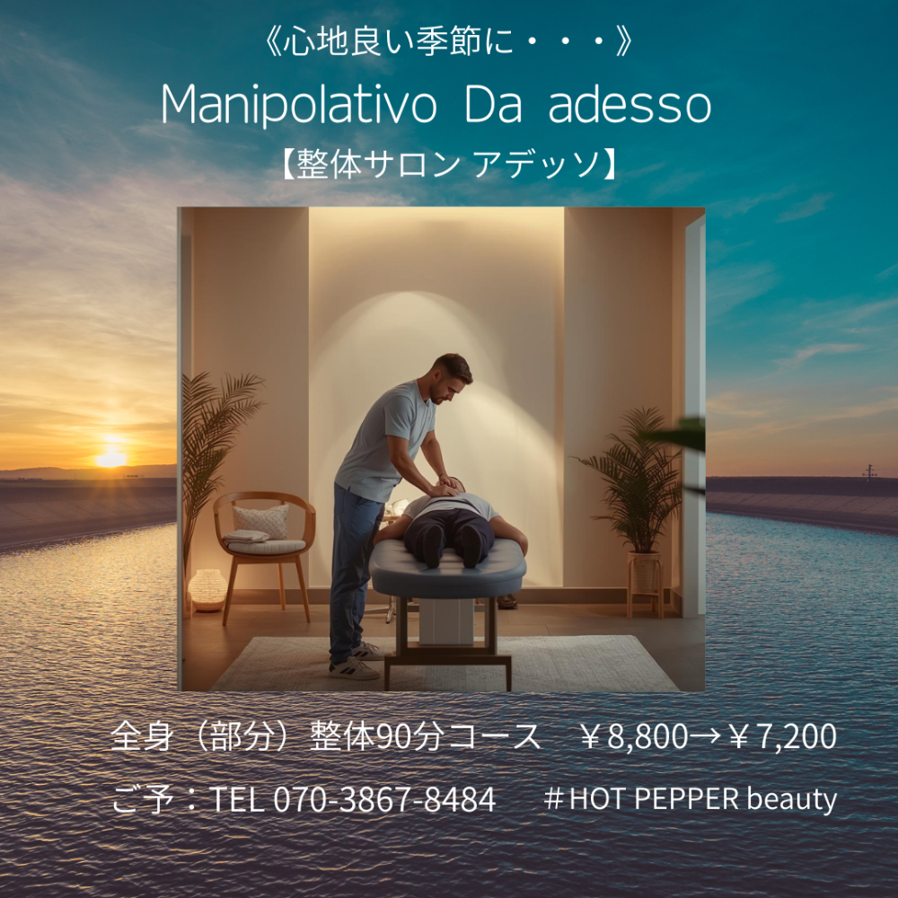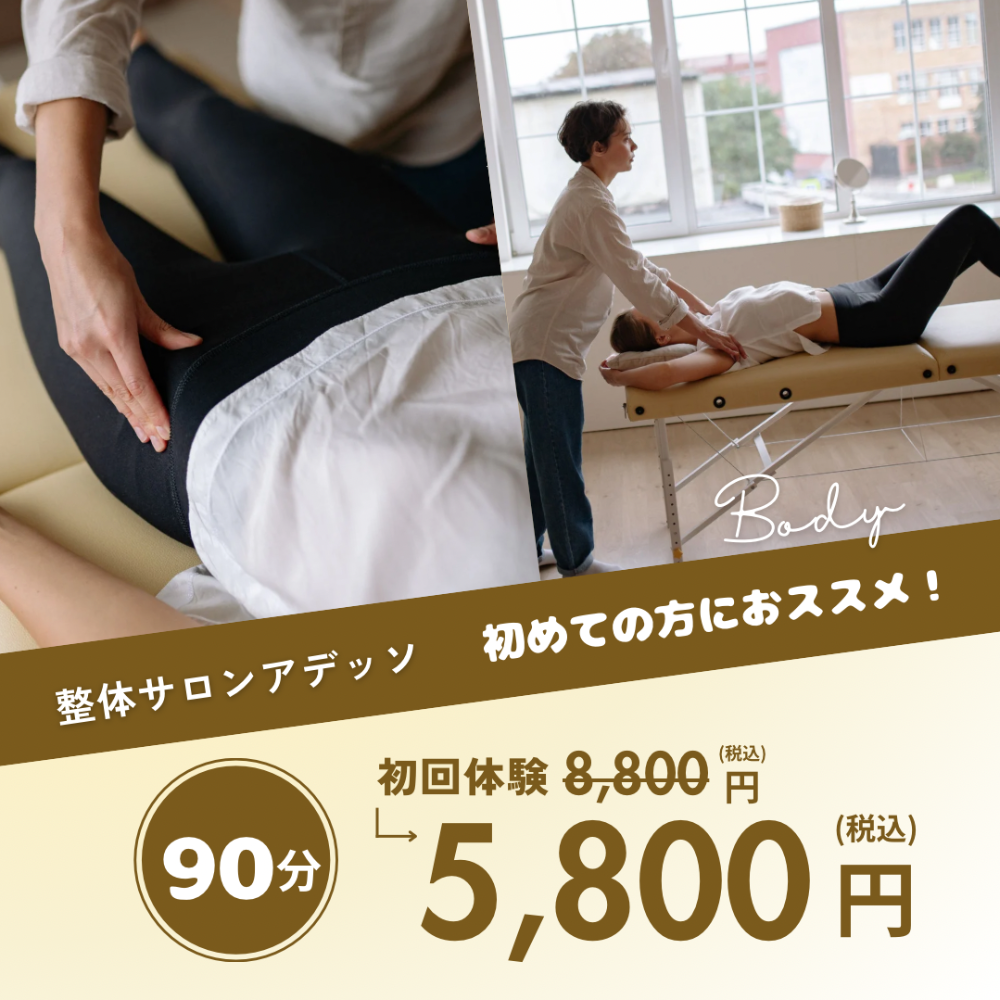 はじめまして。数あるサロンの中から整体サロン アデッソをお選びいただき、誠にありがとうございます。